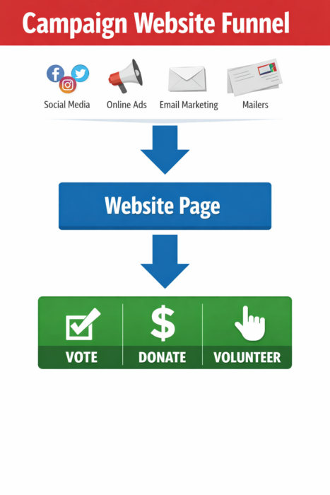 Every page should move someone closer to that moment—understanding your campaign, deciding to support you, and ultimately showing up to vote.